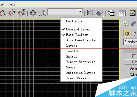 3dsmax9英文版中如何向工具欄中添加工具按鈕 以陣列工具為例。