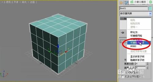 1、首先在透視圖里畫出一個正方體,設(shè)置好邊長和分段數(shù),分段數(shù)設(shè)為3。