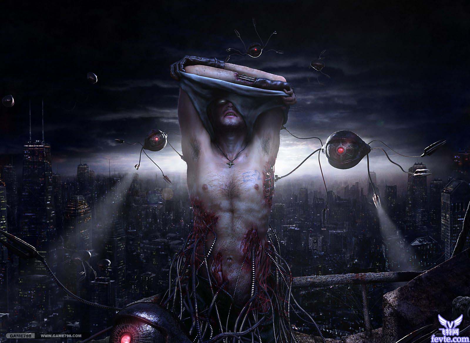我的啟發來自告訴在人和機器之間的一場戰爭的小說故事。人幾乎絕種。幸存者變得堅強由離開正路。 我們可以贏取?我認為它看起來象矩陣:)這張圖象想要表達人的反叛精神,最終勝利最后來臨。所以,我放字符入一個陰暗和壓抑環境并且想通過姿態表達人力和字符的肢體語言。什么是更多,有一個大區域光源在代表勝利的背景中。為了使整體圖象有很多壯麗,我決定利用一個巨大的城市是我的背景。整體圖象充滿混亂并且毀壞,同時,但是我不要它看太可怕和。我迅速得出了草稿和顏色關系,然后繼續增加我自己的想法和使用某人的巨大概念供參考。一旦我認為一般設計很好是,我轉向了下一個步驟。因為我可能之后,可能提煉它我沒有想在這步上花費許多時間。