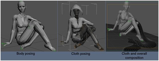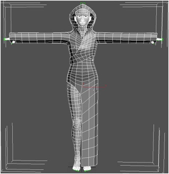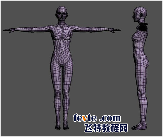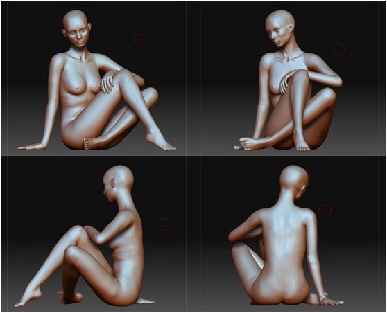 我已經(jīng)有了一個大概的想法,但我又想做些"哥特式"風(fēng)格的東西,所以我便把這些想法都結(jié)合在了一起。接下來我就開始用默認(rèn)的basemesh來為女孩造型(圖01 – 圖03)。