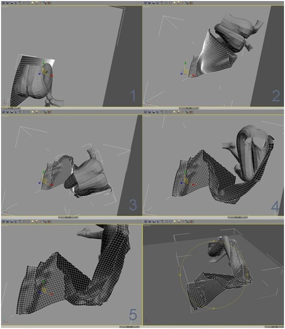 我模擬了衣服的尾綴,因為我在概念上已經(jīng)設(shè)計了原始的仿制"尾巴",接下來我已經(jīng)有了一個抽象的形態(tài)。所以我開始在一個有平均多面性參數(shù)的平面內(nèi)進行接下來的制作。我進行了動畫設(shè)置,讓模型躺在地上,制作了必要的路徑,我擰扭了一下服裝的設(shè)置參數(shù),也是運用動畫,只到得到滿意的結(jié)果,在那之后,我將它移到ZBrush中進行更進一步的刻畫,以得到更好的結(jié)果。(圖07&圖08)