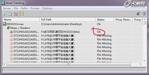紅圈圈住的位置就是貼圖丟失的意思,如果沒有丟失則是OK或者found