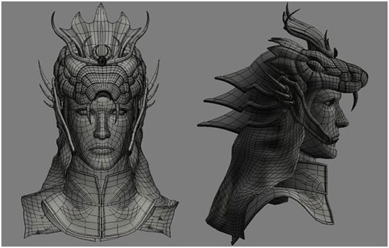 建模的方法有很多,但對我來說,當(dāng)我看到"Joan of Arc"的建模教程(Michel Roger的著名的教程)的時候,我覺得在風(fēng)格上,跟我使用的建模方式——面片建模,沒有什么太大的不同。建衣服的模型時,我運(yùn)用3 dmax服飾來模擬,試圖達(dá)到一種更加現(xiàn)實(shí)化的效果。(圖1)