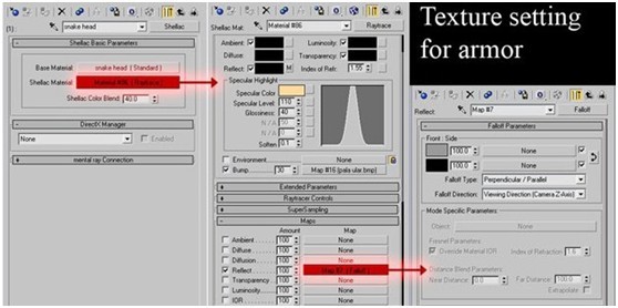 對于"王子"身穿的盔甲,在3dsmax中我使用了shellac材料,這是我用于制作"王子"的裝甲、武器等的設(shè)置。(圖4)