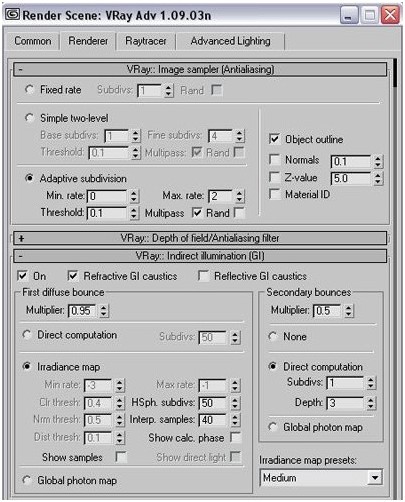 最后的渲染是在3dsmax 6中完成的,我用Vray 1.09來進(jìn)行渲染。下圖是渲染設(shè)置。(圖7)
