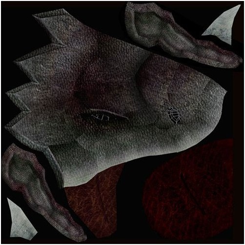 我使用了一個叫做"Deep UV "and"Texporter"的軟件來幫我展開我的模型。用"Deep UV"我在場景中修改了UV,創(chuàng)建一個線框布局,讓我能更容易地在PS中繪制紋理,無論是2D還是3D模式。下圖就是我模型紋理的樣品。(圖3)