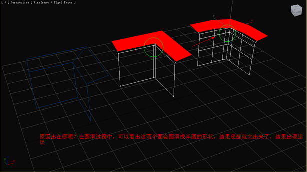 原因出在哪呢?在圓滑過程中,可以看出這兩個面會圓滑成半圓的形狀,結(jié)果底部就突出來了,結(jié)果出現(xiàn)錯誤。(圖05)