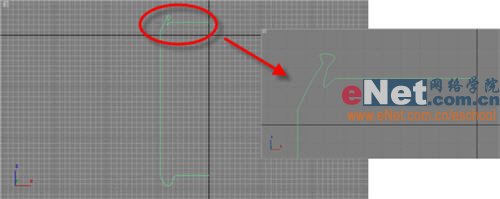 1、啟動3dmax9.0,點擊“創建”命令面板中的“圖形”按鈕,進入圖形命令面板,單擊“線”按鈕,在前面視圖中繪制一線段line01,通過對頂點的Bezier方式處理將曲線的棱角進行平滑處理,效果如圖1所示。