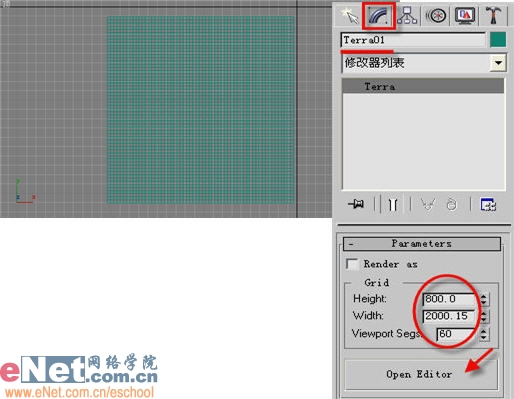 1、啟動3dmax9.0,單擊“創建”命令面板,點擊“幾何體”按鈕,在下拉列表框中選擇“dreamscape object”項。然后,在“對象類型”卷展欄下點擊“terra”按鈕,在頂部視圖中繪制一地形terra01,如圖1所示。