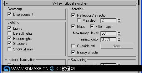 關閉默認燈光"default lights". 全局光及發光貼圖 Global Illumination and Irradiance Map