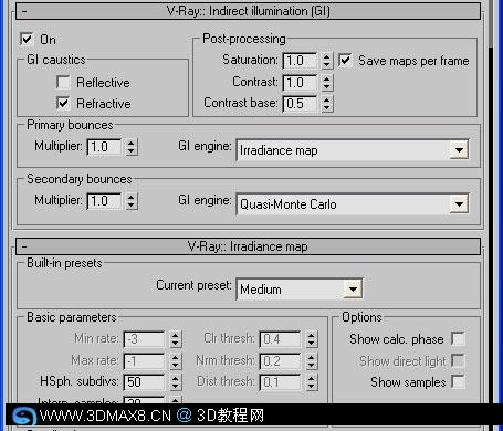 - 初次反彈"Primary bounces"設置為Irradiance Map