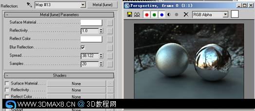 車的輪鼓部分是一個比較特殊的材質,是反射模糊的金屬效果,這在不使用mental ray的年代里制作起來相對的困難一些,其實軟件本身還是支持這個效果的只是不很好而已,在光線追蹤材質的高級選項當中有設置。那個時候更多的是在凹凸貼圖上加一個噪波來實現的,現在在使用Metal(lume)作為反射貼圖的時候將有明確的參數來控制模糊的結果和精細程度。