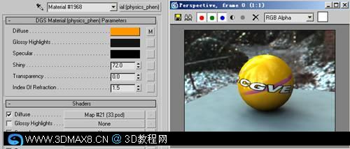 下面將調節材質來使汽車更為符合我們的要求,mental ray兼容大多的3ds max 自身材質,這使我們可以混合使用材質,材質方面主要集中在車漆玻璃車燈和車輪鼓,也就是涉及到了反射折射和模糊發射等效果,首先先看整個車身的材質他其實是一種帶有一定反射的光滑材質,類似陶瓷表面,光滑高光明顯。汽車金屬漆面的高光特點是在一個很亮的高光周圍還有一個比較平緩的副高光,這樣的特性我們只需要用一個普通的多級異向陰影類型就可以實現了。車體的反射也可以用簡單的光線追蹤來實現。這里將在視頻教程中做介紹。當然你也完全可以使用 DGS 材質來直接制作。只需要將Shiny 參數設置到一個合適的水平,再將 Diffuse 通道添加一張需要的貼圖就可以。