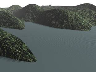 圖7-15 渲染效果在缺省狀況下,標(biāo)準(zhǔn)霧在遠(yuǎn)環(huán)境范圍到處達(dá)到100%濃度,而在近范圍處濃度為0%,在遠(yuǎn)范圍處的物體不可見,在近范圍內(nèi)的對(duì)象則是完全可見的。要改變這些值,在標(biāo)準(zhǔn)霧參數(shù)中調(diào)整Near(近)和(Far)遠(yuǎn)的數(shù)值。