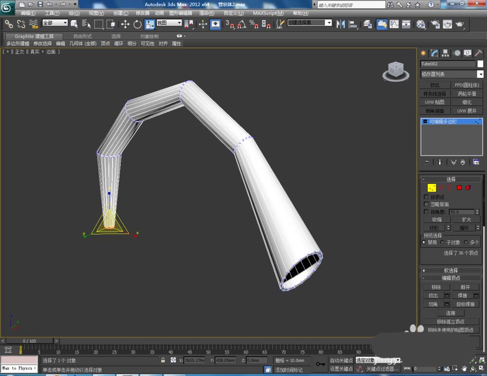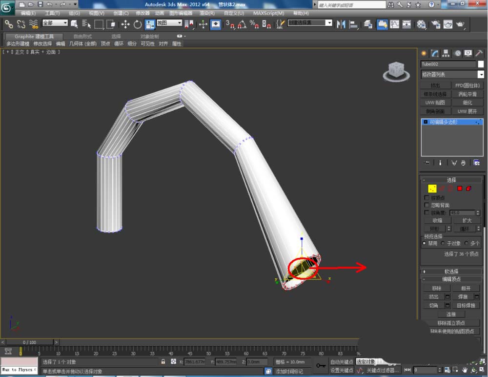 3、選中模型兩段的點,分別對模型兩段的點進行縮放調整。完成后再次調整模型中對應點的位置(如圖所示);
