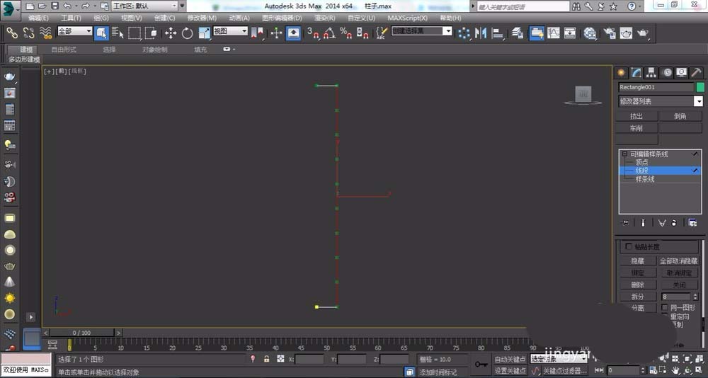 2、然后把這個矩形轉(zhuǎn)換為可編輯樣條線,并在線段層級下把最左邊的一條邊給刪除掉,如下圖紙所示。
