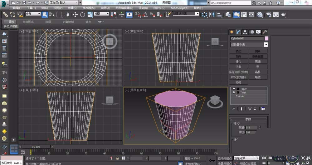 2、然后選擇圓柱體,點擊錐化修改器,把錐化數量設置為0.5mm,具體效果如下面圖紙所示。