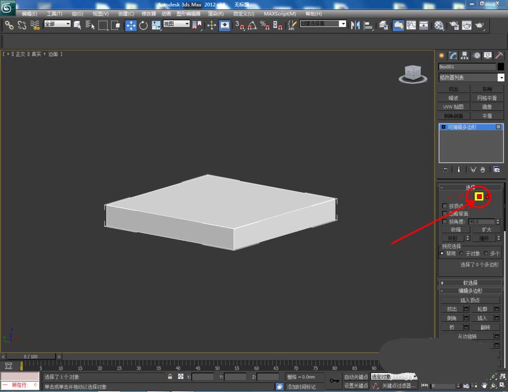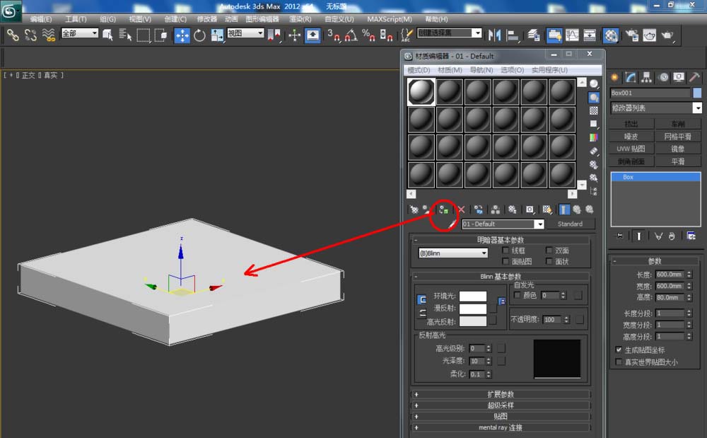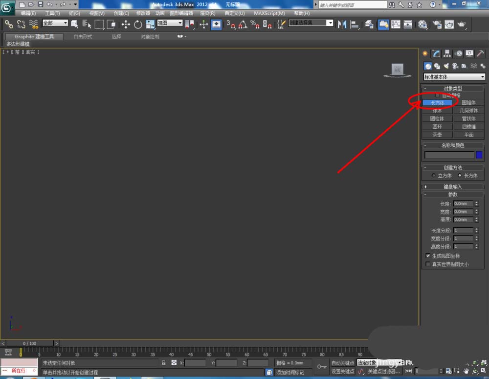 1、打開3Dmax2012軟件,點擊【創建】-【幾何體】-【標準基本體】-【長方體】在作圖區域繪制一個600*600*80mm的長方體模型;