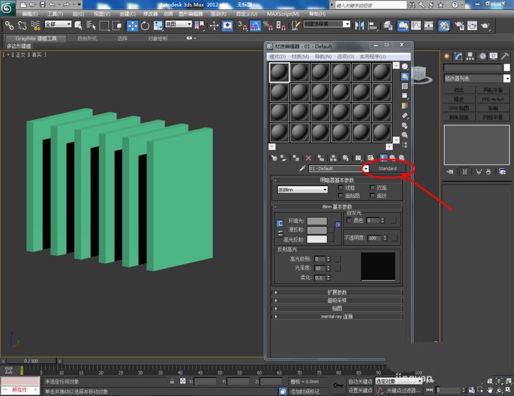 3、點擊【材質編輯器】,彈出材質編輯器設置框,點擊【standard】-【VAryMlt】設置一個Vary材質球,按圖示參數設置一個白色乳膠漆(ici)材質,并將材質附加給模型(如圖所示);