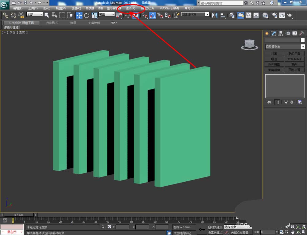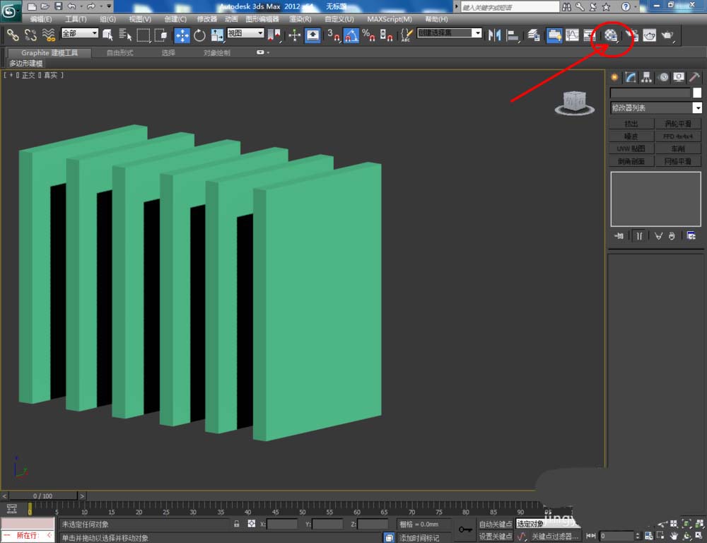 1、打開3Dmax2012軟件,點擊【創建】-【圖形】-【矩形】,在作圖區域繪制一個300*210mm的矩形圖案。點擊【修改】-【擠出】,擠出數量設置為:20mm,制作出一個模型基本體并拉動復制出另外五個模型副本;