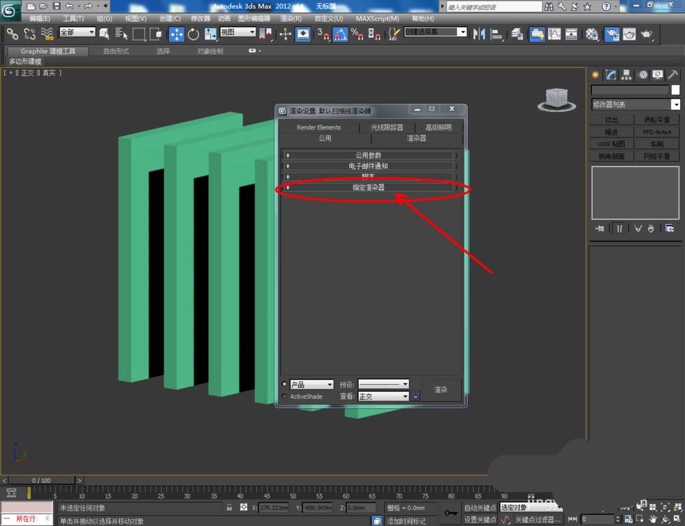 2、點擊【渲染】-【渲染設置】,彈出渲染設置框。點擊【指定渲染器】-產品級【…】-【Vary-Adv2.10.01】調出vary渲染器(如圖所示);