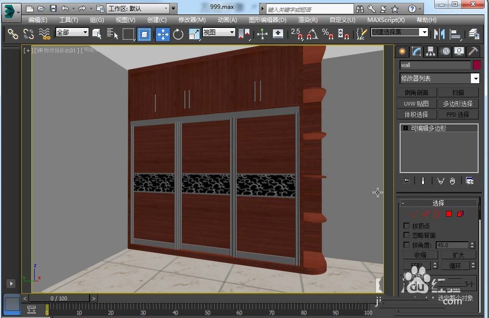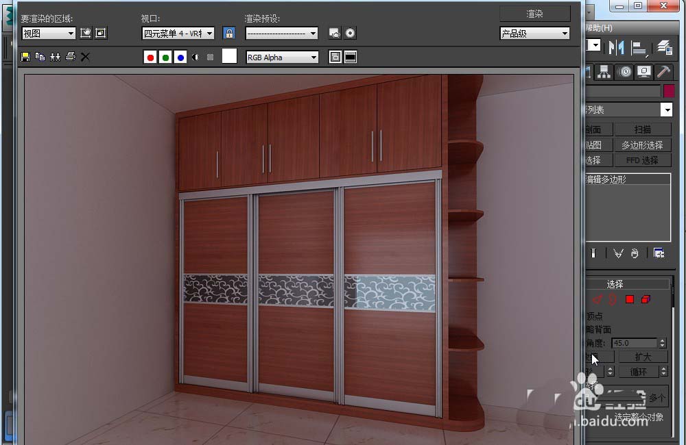 6、打開一個模型,把木紋材質賦予對象,渲染得出最終效果圖。