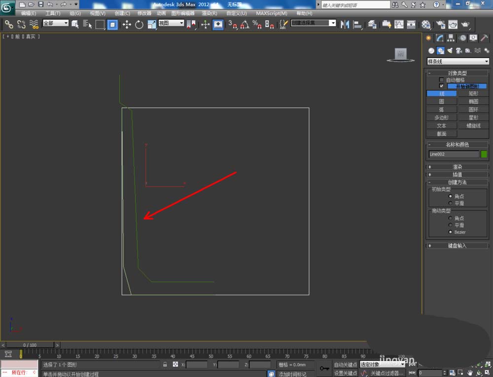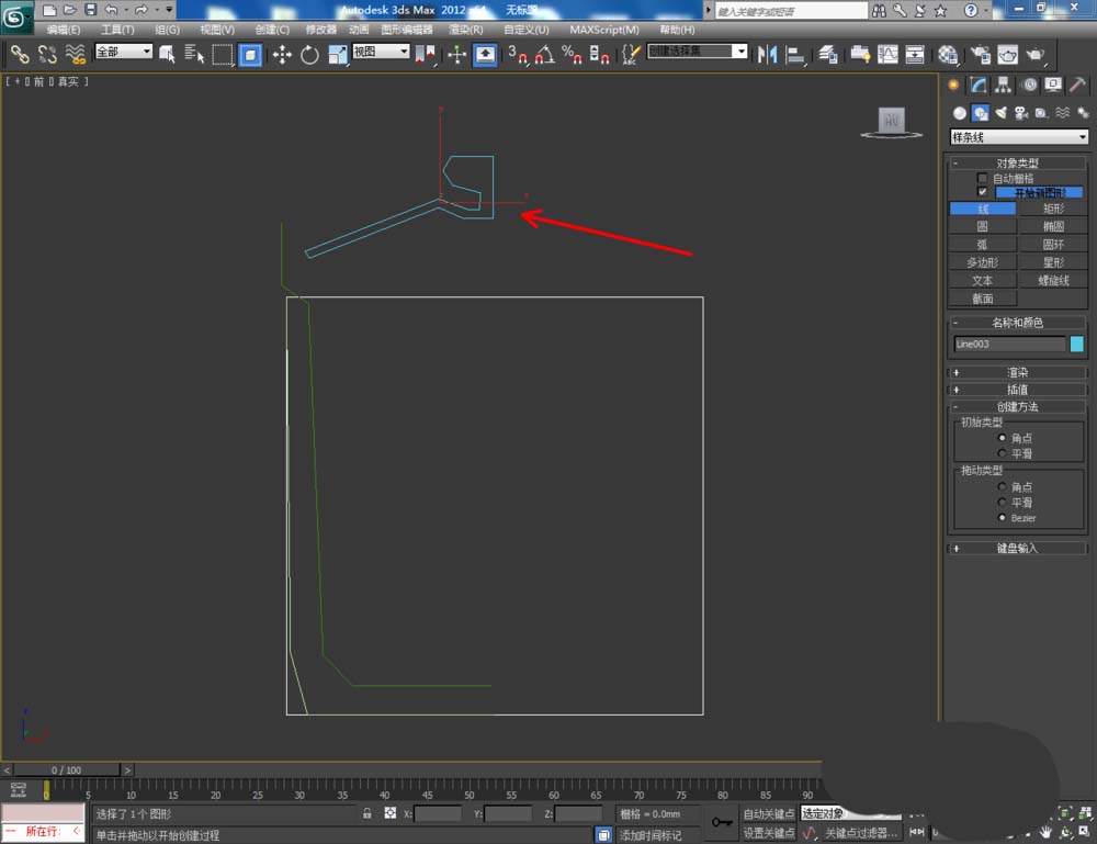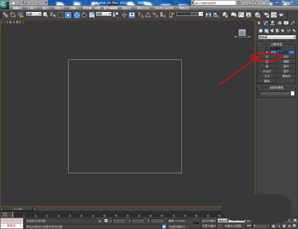 1、打開3Dmax2012軟件,點擊【創建】-【圖形】-【矩形】,在作圖區域繪制一個200*200mm的矩形圖案作為參考線框。選中圖案,點擊【對象顏色】將圖案的對象顏色設置為:白色;