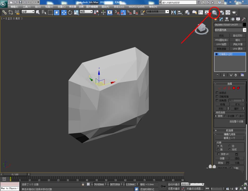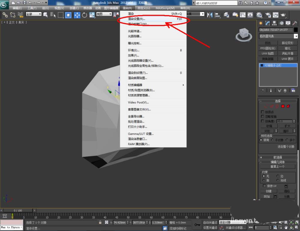 1、打開3Dmax2012軟件,點擊【創(chuàng)建】-【幾何體】-【擴展基本體】-【異面體】,使用異面體工具制作出一個寶石模型;