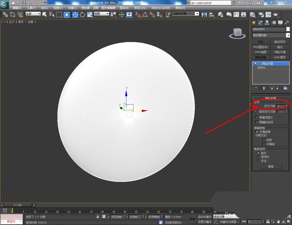 2、選中球體模型,對模型進行縮放操作。完成后,選中模型,點擊【渦輪平滑】對模型進行平滑優化處理(如圖所示);