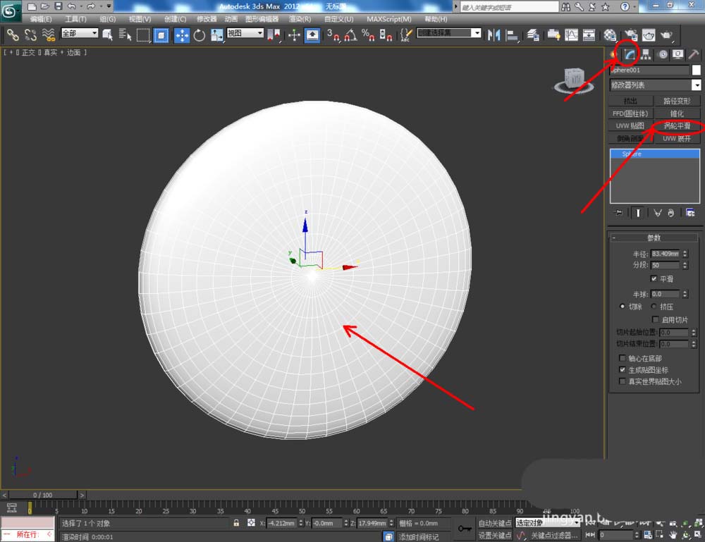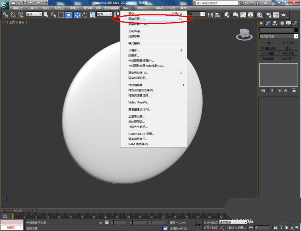 1、打開3Dmax2012軟件,點擊【創建】-【幾何體】-【球體】,在作圖區域繪制一個球體模型,并將模型的對象顏色設置為白色;