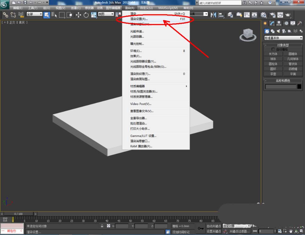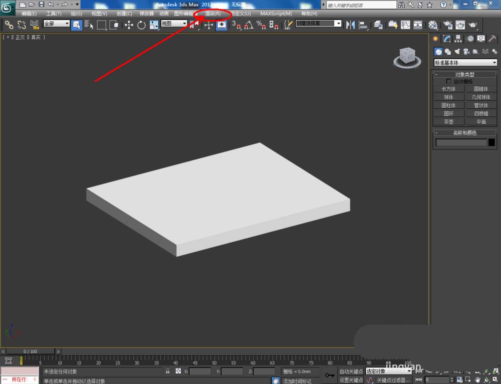 1、打開3Dmax2012軟件,點擊【創建】-【幾何體】-【長方體】,在作圖區域繪制一個長方體模型。點擊【對象顏色】將模型的對象顏色設置為:白色;