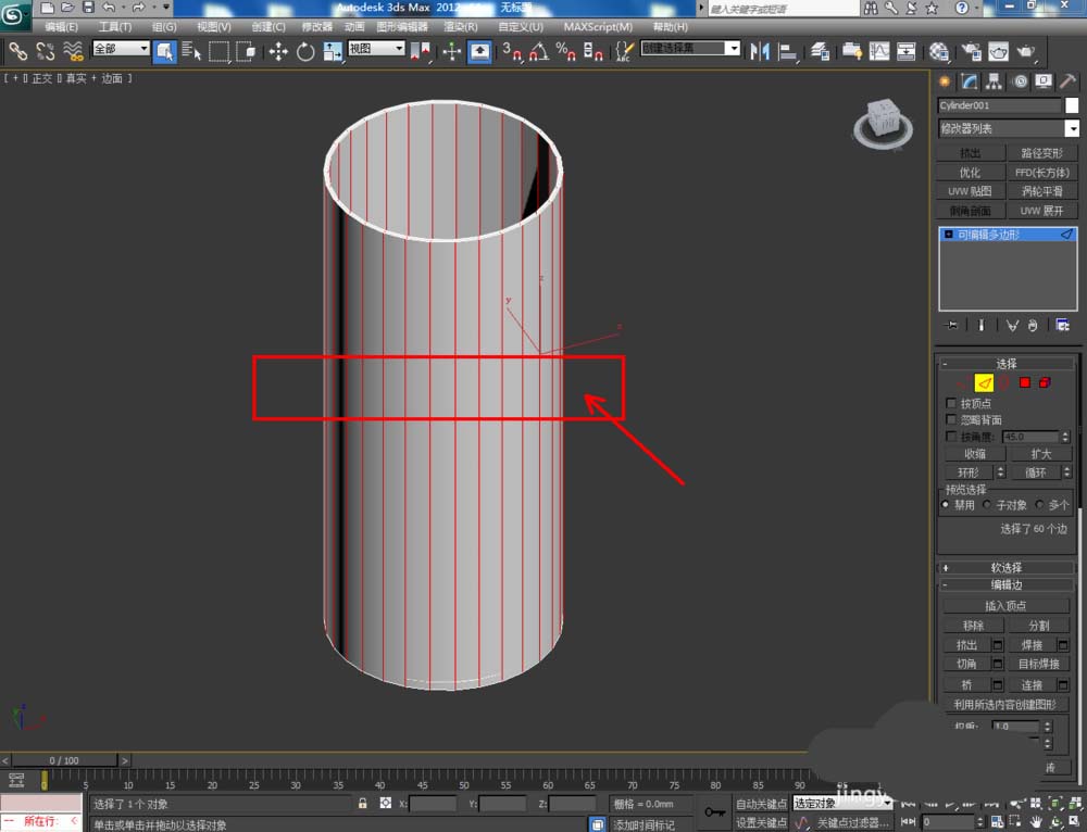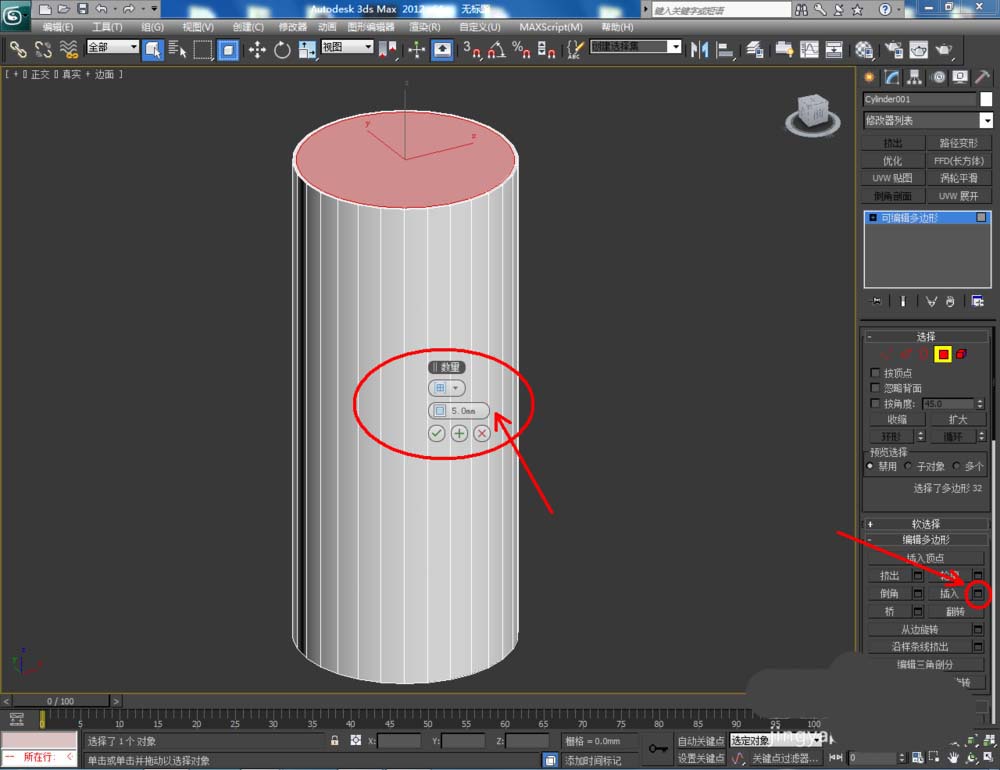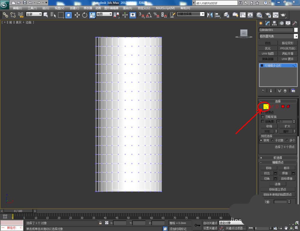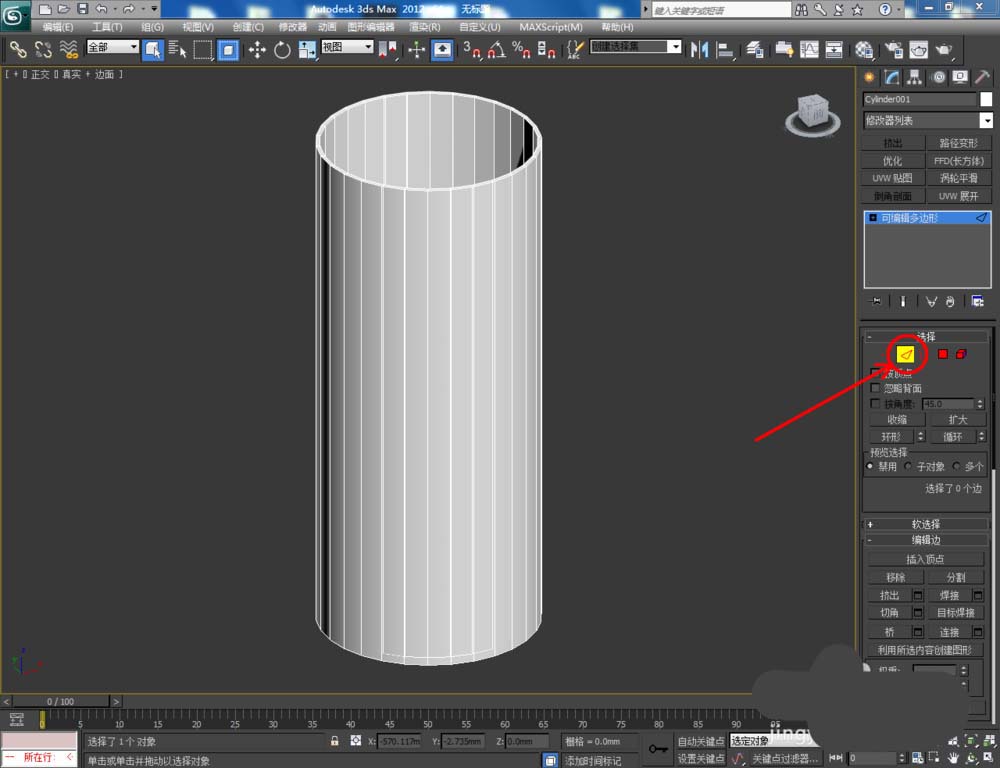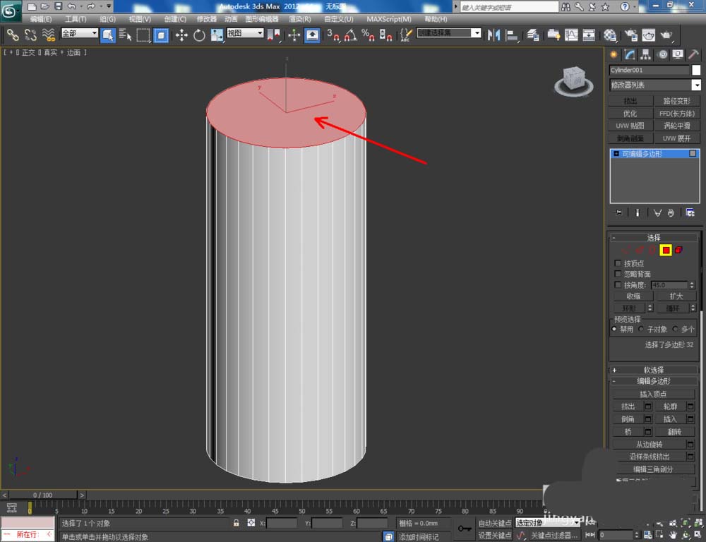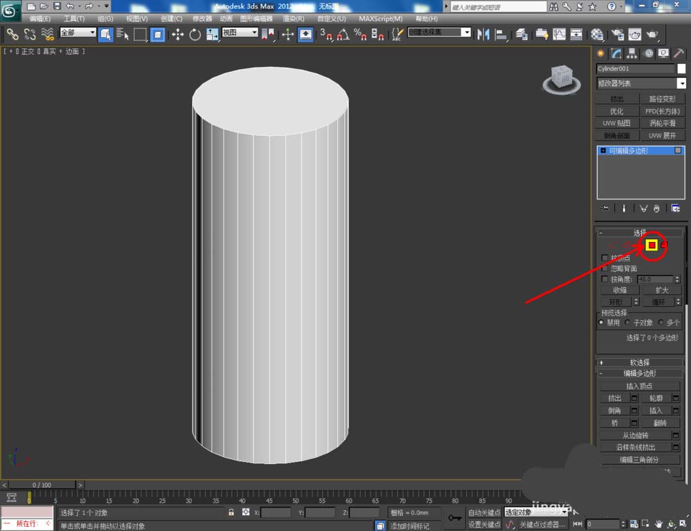 1、打開3Dmax2012軟件,點擊【創建】-【幾何體】-【圓柱體】,在作圖區域繪制一個圓柱體模型并設置好圓柱體的各個參數。點擊【對象顏色】將模型的對象顏色設置為:白色。完成后,點擊鼠標-【轉化為】-【轉換為可編輯多邊形】;