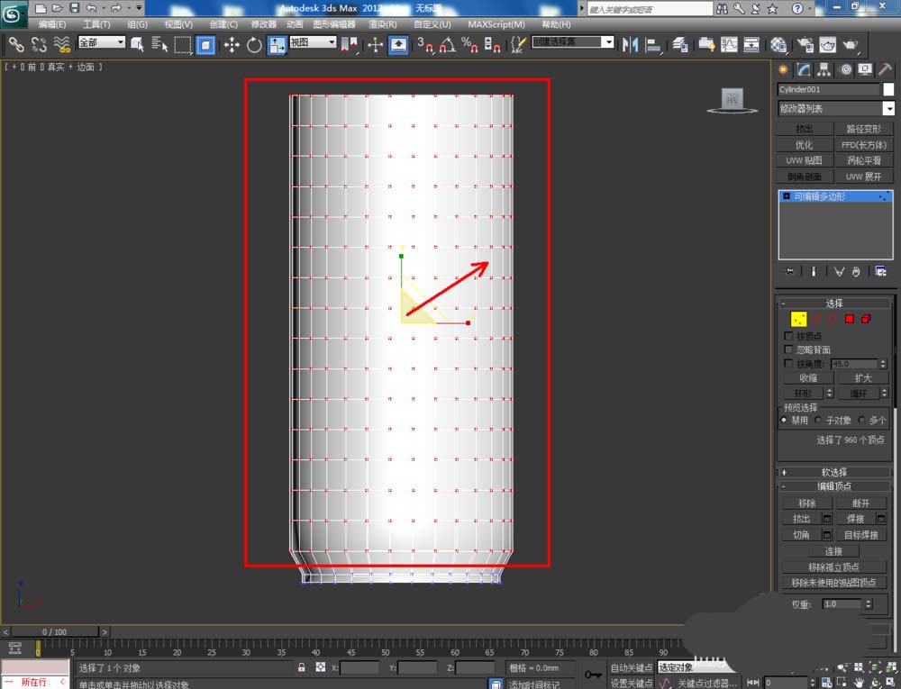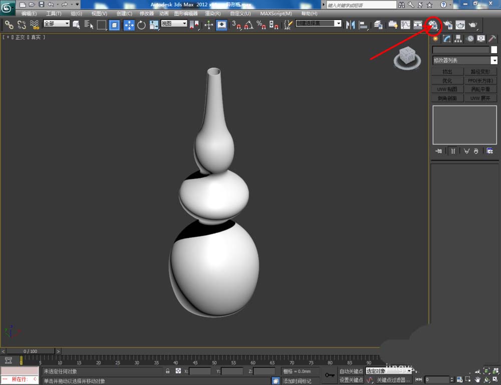 4、點擊【頂點】圖標,通過縮放命令對模型上的點進行縮放操作來完成對瓶子造型的塑造。完成后,選中模型,點擊【修改】-【渦輪平滑】對模型進行平滑優化處理(如圖所示);