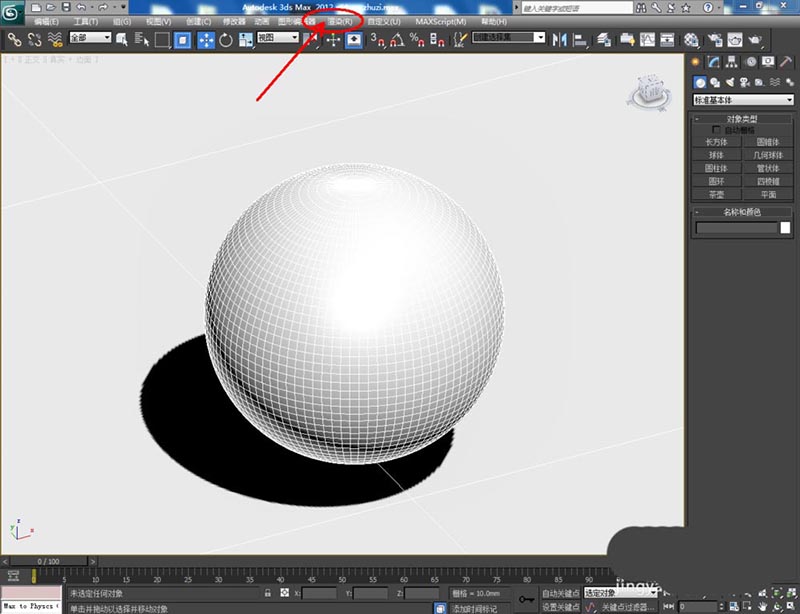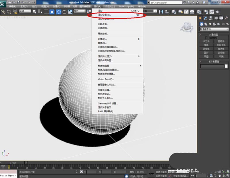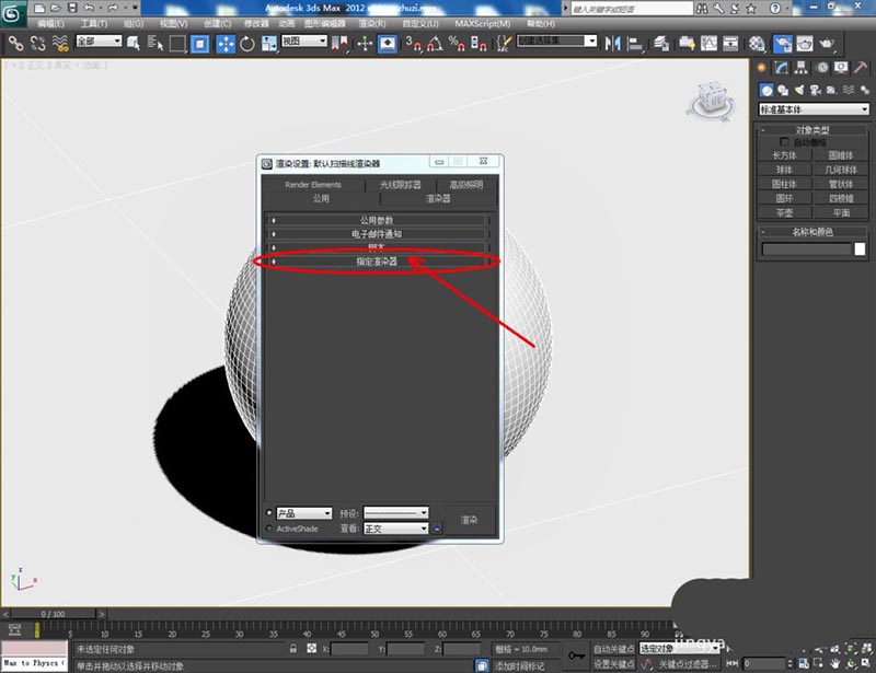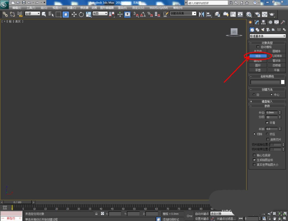 1、打開3Dmax2012軟件,點擊【創(chuàng)建】-【幾何體】-【球體】,在作圖區(qū)域繪制一個球體模型并按圖示設置好球體的各個參數(shù)。選中模型,點擊【對象顏色】將模型的對象顏色設置為:白色;