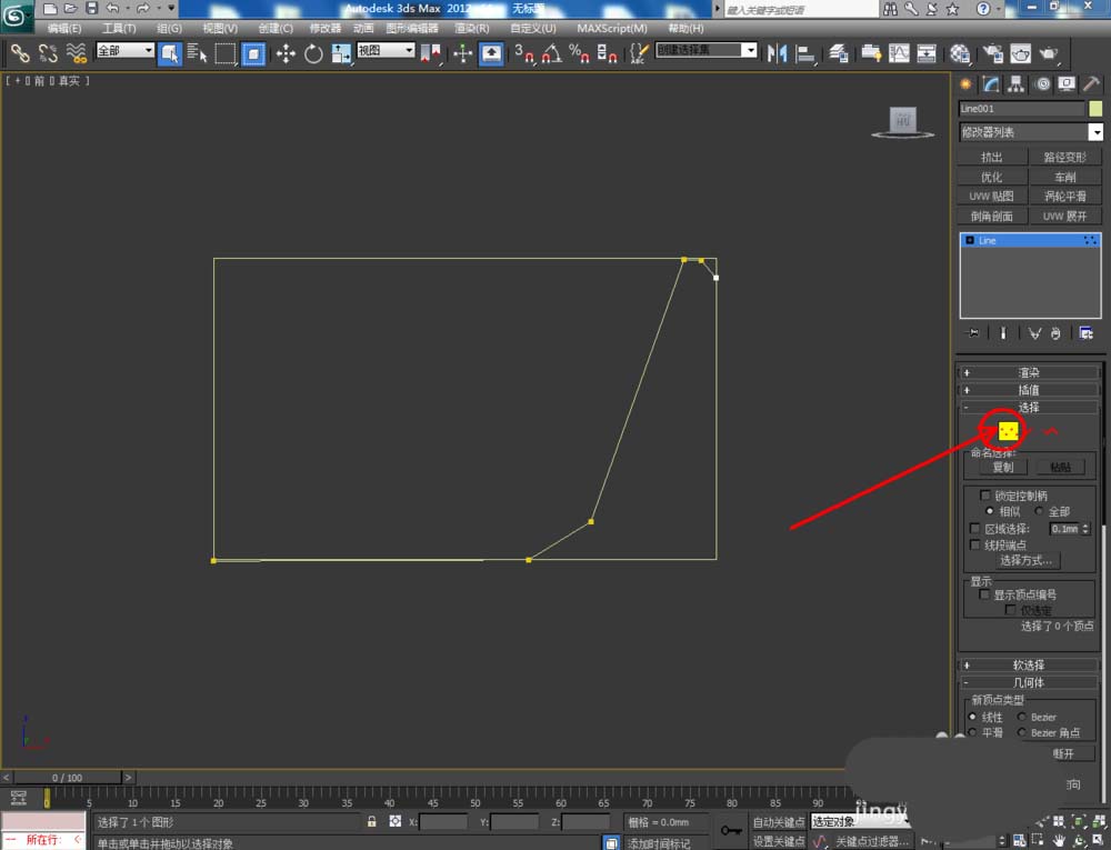 2、點擊【創(chuàng)建】-【圖形】-【線】,按圖示以矩形圖案為參考,繪制一個多邊圖案。點擊右邊工作區(qū)中的【頂點】圖標,選中圖示圖案上的點,將選點進行圓化平滑處理。完成后刪除矩形參考圖案;