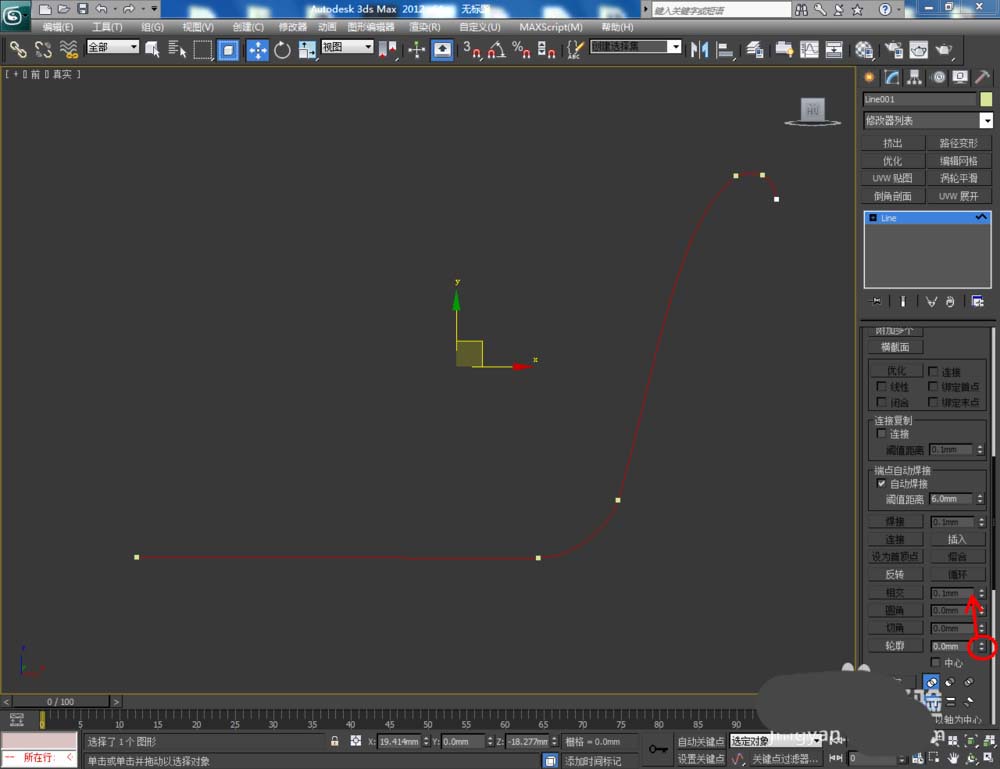 3、點擊右邊工作區(qū)中的【樣條線】,選中圖案上的所有樣條線,鼠標向上拉動【輪廓】右邊的小三角,對選線進行輪廓處理,制作出盆子的截面圖案(如圖所示);