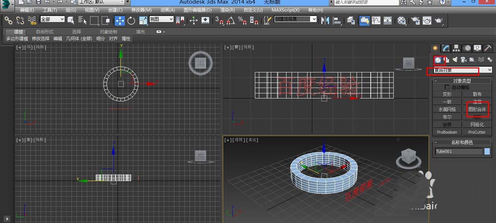 4、選擇管狀體,在復(fù)合對象里面找到圖形合并