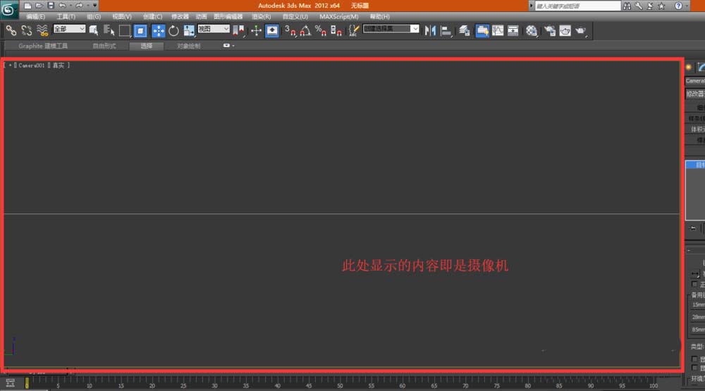 4、 步驟3后,在軟件的視圖區(qū)域鼠標(biāo)左鍵點(diǎn)擊后,進(jìn)行鼠標(biāo)拖拽,如下圖所示創(chuàng)建攝像機(jī)對象。