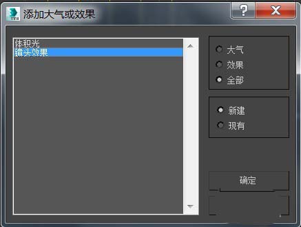 2、在泛光燈的修改器列表里找到“大氣與效果”,點擊“添加”,彈出對話框選擇“鏡頭效果”點擊確定,這樣,返回修改器的“大氣與效果”就有了“鏡頭效果”,選擇他然后點擊設置;