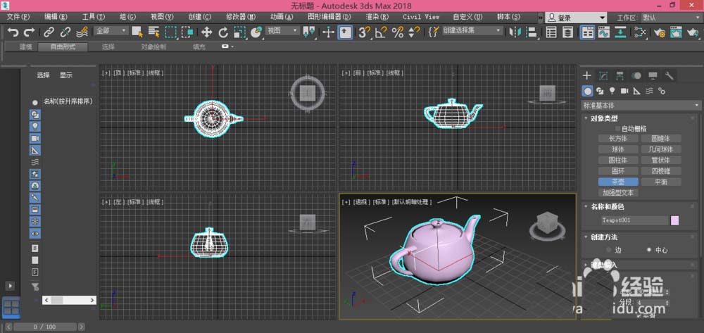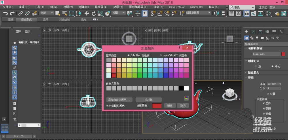 6、為了讓這個茶壺更為逼真我們可以修改一下茶壺的顏色,我選擇把它修改成那種紫砂的顏色,如圖