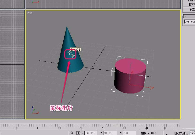 4、移動鼠標指針到圓錐上面,單擊鼠標。