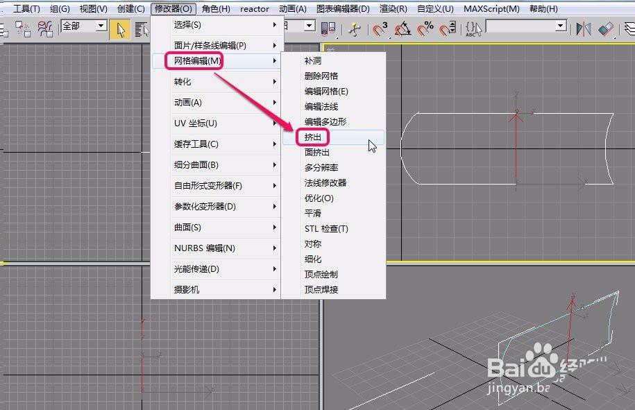 6、選擇“網(wǎng)格編輯”項(xiàng)中的“擠出”命令。
