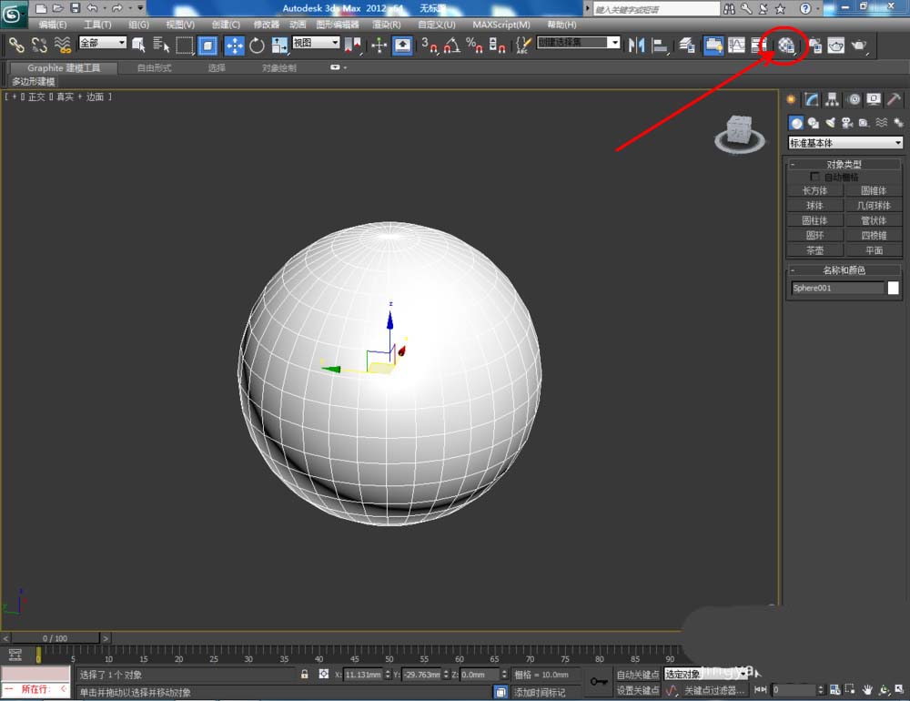 2、點擊【材質編輯器】,彈出材質編輯器設置欄,按圖示參數設置一個白色材質球。選中球體模型,將白色材質球附加給模型(如圖所示);