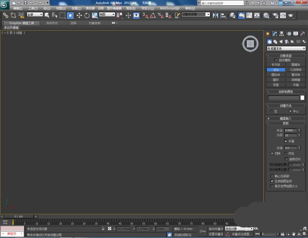 1、打開3Dmax2012軟件,點擊【創建】-【幾何體】-【球體】,在作圖區域繪制一個球體模型。按圖示設置好球體參數后,將對象顏色設置為白色(如圖所示);