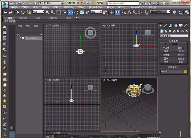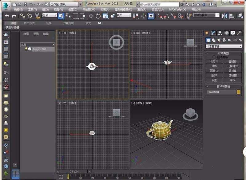 1、首先打開3dmax進入工作區域,然后隨便創建一個對象,這里創建一個茶壺。如圖所示