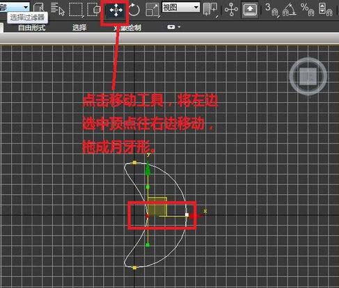 5、點擊移動,將選中的左邊頂點往右邊移動,拖成月牙形。