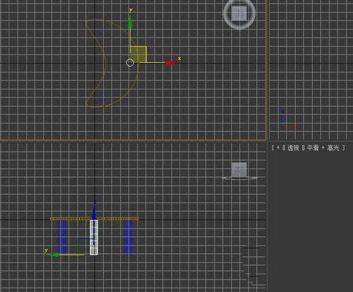 12、選中圓柱體,按住Shift鍵,在頂視圖拖動到月牙形的后部和右部,復(fù)制生成兩個新圓柱體。