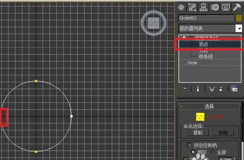 4、點擊編輯樣條線-頂點,選擇圓的最左邊頂點。