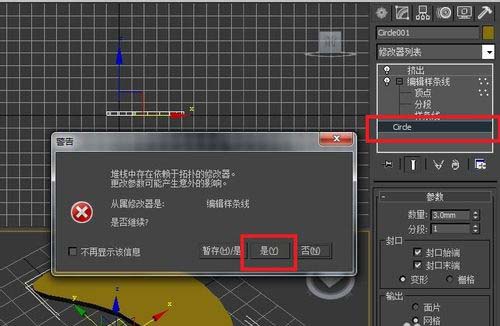 8、點擊修改面板的Circle,彈出框選擇 是。