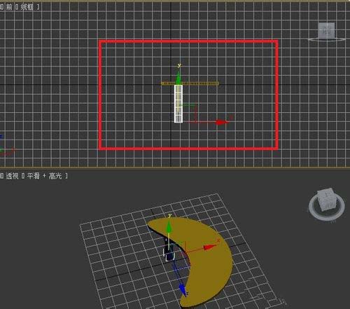 11、選中圓柱體,點擊移動工具,在前視圖將它移動到月牙形平臺的下方。